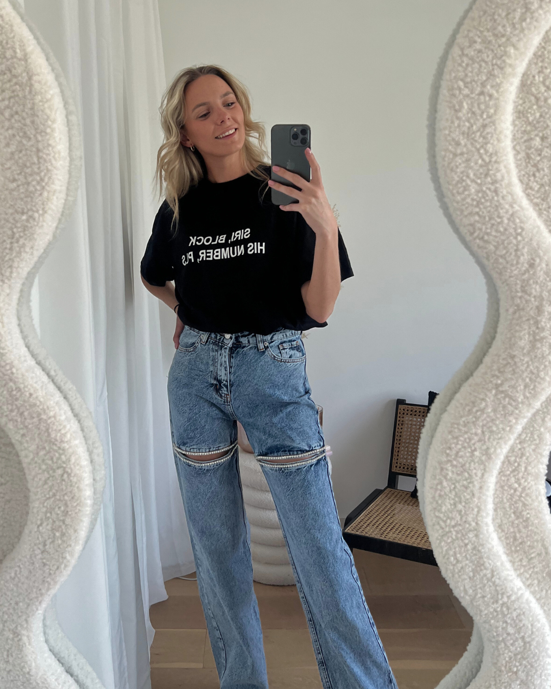 Super zachte t-shirt met tekst. Is een oversized modelletje dus valt iets groter uit. We raden aan om een maatje kleiner te nemen dan normaal. Beschikbaar in maten XS, S en M.